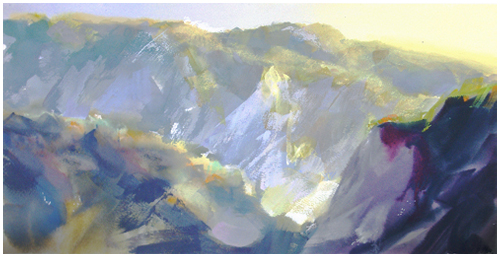 This last one is the color key sketch. The full painting was about 10" x 60", painted in